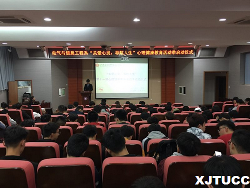 为进一步提高大学生的心理素质,宣传普及心理健康知识,深入开展大学生心理健康教育,电气与信息工程系于4月2日下午18时在F100报告厅举办“关爱心灵,导航人生”心理健康教育活动季启动仪式。系学生工作主管王姣、辅导员张敏娜、樊超、唐玮、金牧羊及2018级全体学生参加了启动仪式,此次活动由电信161班马鹏鹏主持。