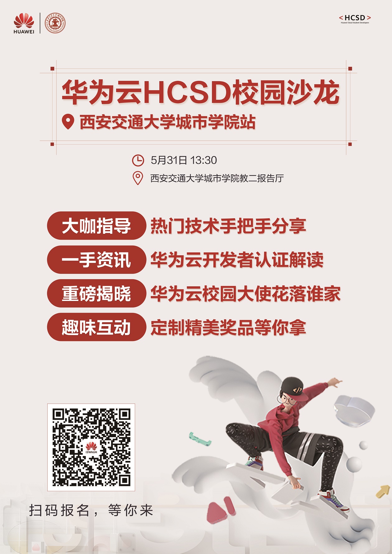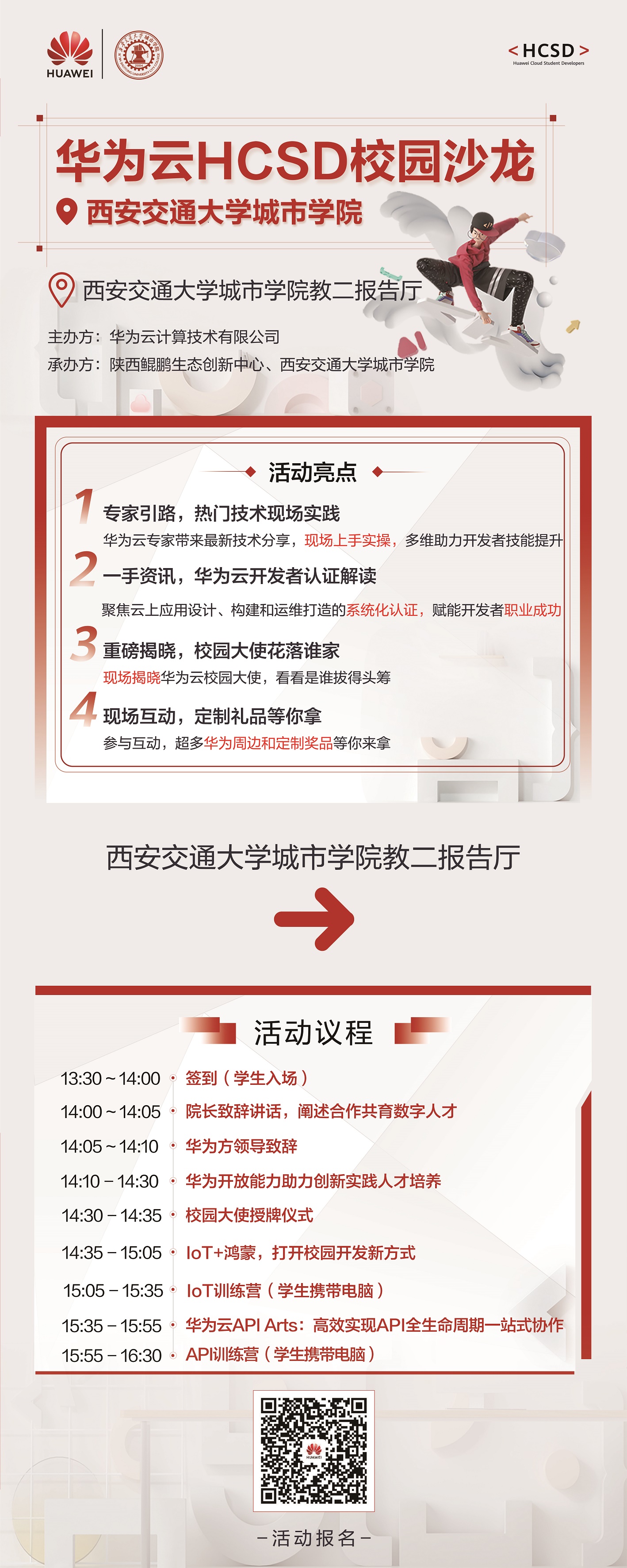 本次沙龙由华为云专家带来最新的行业技术分享,模拟企业实操场景,帮助学生提升技术知识,诚邀全院师生参加!