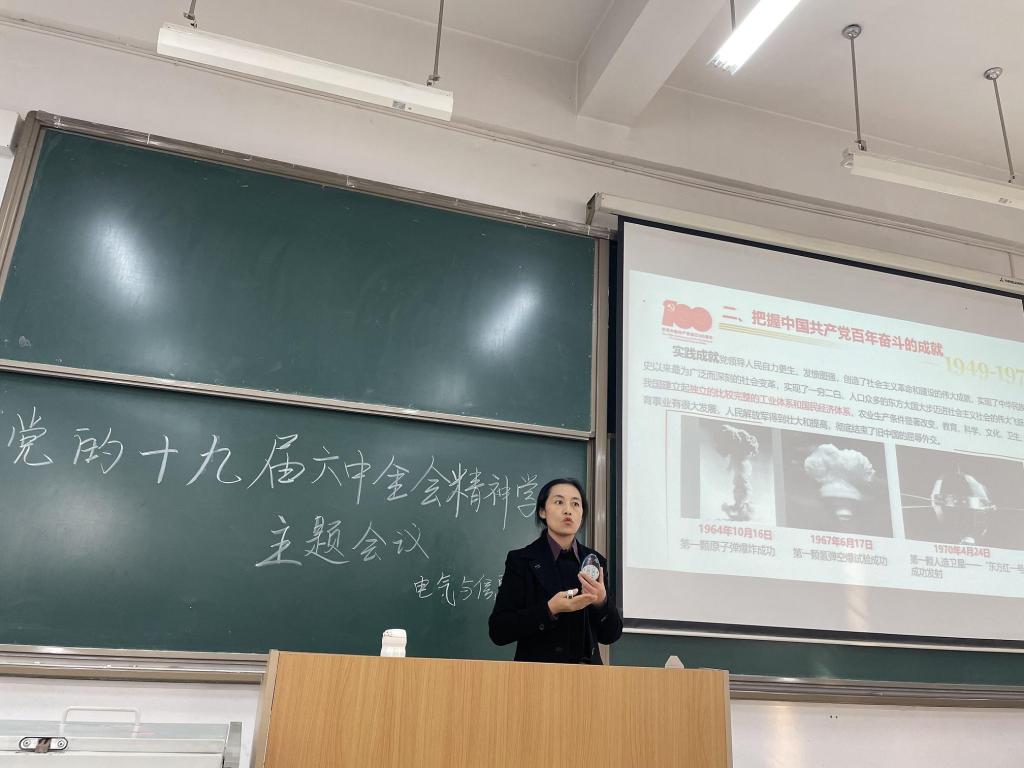 2021年12月9日,为积极响应学习党的十九届六中全会精神,明确中共中央党的百年奋斗重大成就和历史经验,提高学生党员和教师党员的个人素质,电气与信息工程系组织展开了党的十九届六中全会精神学习主题会。电气与信息工程系全体学生党员和教师党员参加了此次会议。