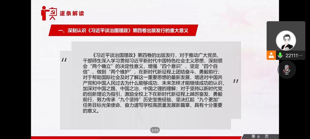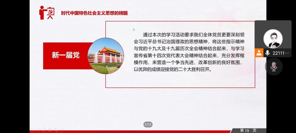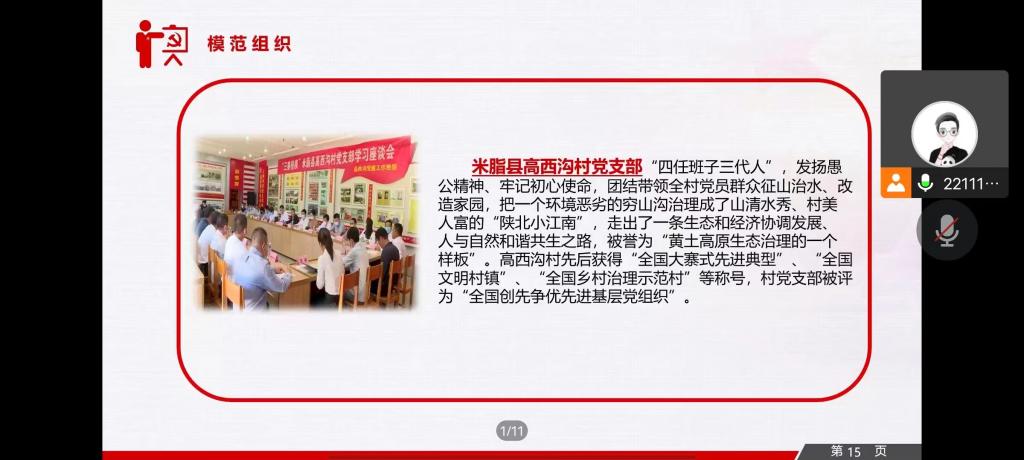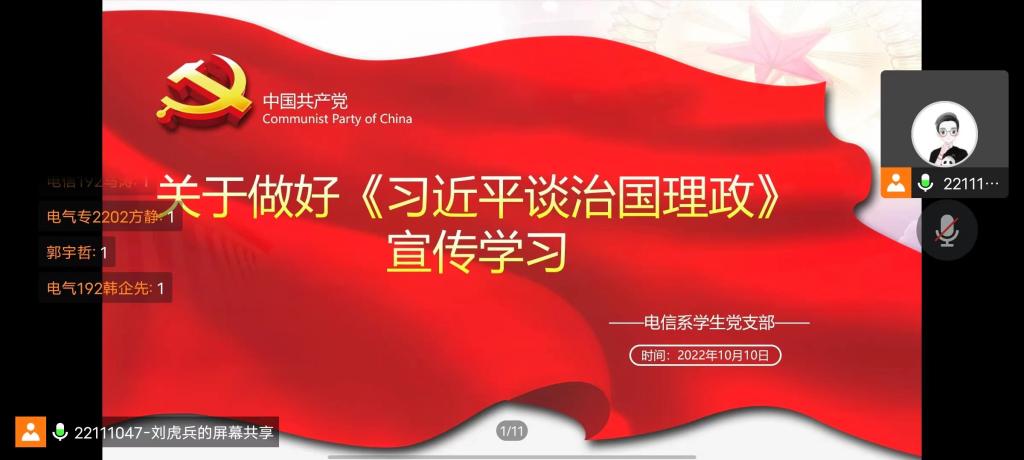 为深入学习贯彻习近平总书记来陕考察重要讲话重要指示精神,充分发挥重大先进典型的示范引领作用,培育和践行社会主义核心价值观,电信系学生党支部于10月11日下午6点在腾讯会议开展第三期党员微讲堂之“学习三秦楷模 歌颂奋斗壮歌”。电信系全体学生党员参加,杨新林同志主持了本次会议。