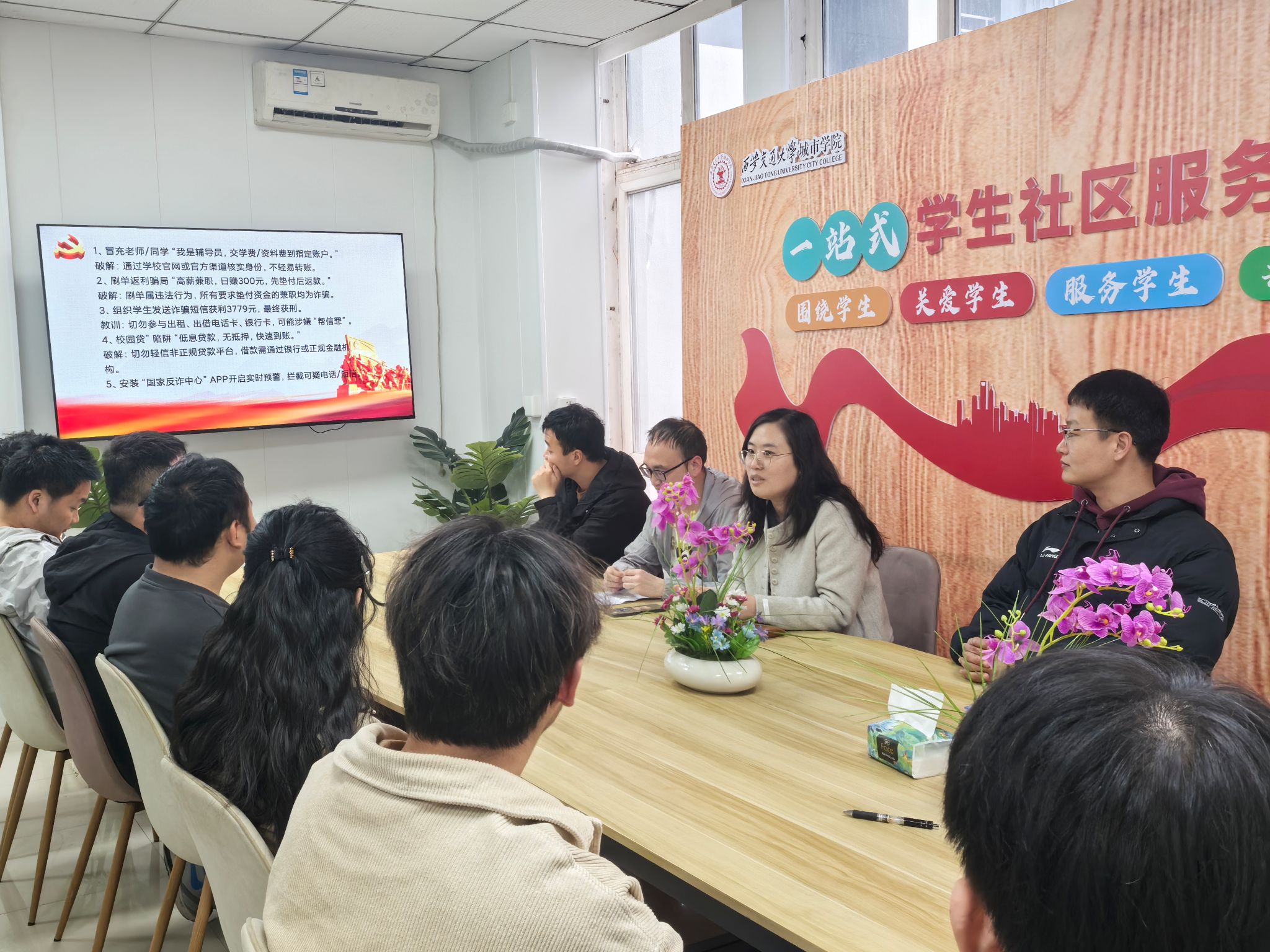 为进一步增强学生防范电信网络诈骗意识,提升安全防护能力,充分发挥学生党员在平安校园建设中的先锋模范作用,4月1日15点,36365线路检测登录入口学生第二党支部于学校“一站式”学生社区组织开展了“防诈同心·党员先行”主题教育活动。活动由党支部书记王玮主持,支部20余名学生党员参与。