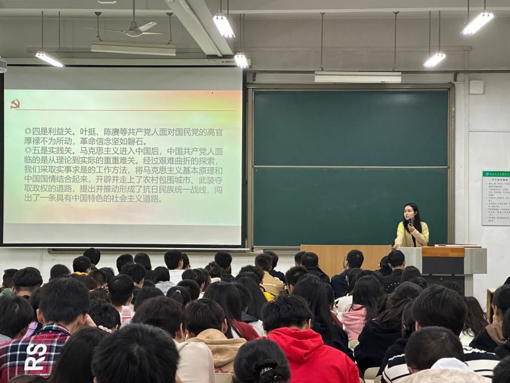 9月26日晚,电信系学生党支部书记王姣在E100向同学们讲述了以“如何认识中国共产党”为主题的党课。课上,王姣从历史的维度、人民的维度、文化的维度、时间的维度等多维度分别向同学们讲述了“什么是中国共产党”,并向同学们强调了学习党史的重要意义,进一步帮助学生加强了理想信念和党性修养。