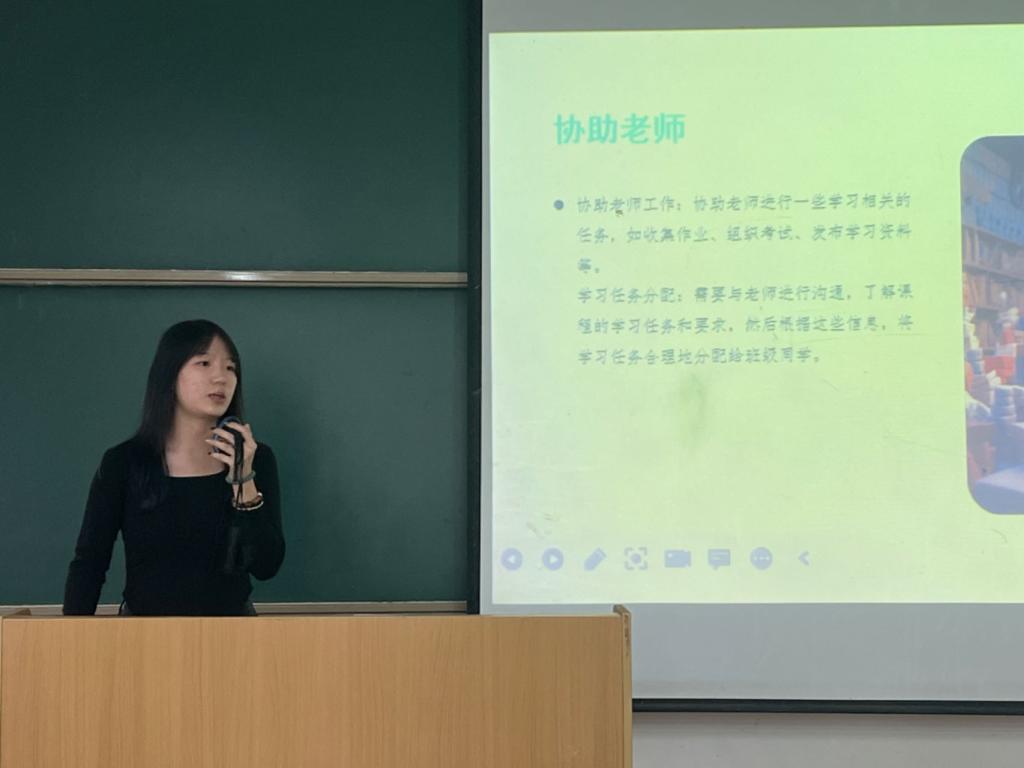 10月11日,马佳辰老师从“为什么当班干部”和“如何当好班干部”向同学们进行讲解,提出了三点要求:一、要明确定位,保持学生干部的初心。二、要善于多方沟通、善于团队协作、善于统筹落实、善于及时反馈、善于积累提升。三、要进一步提高判断力、领悟力和执行力,强化思想引领,增强服务意识,处理好学生干部“将和兵”的关系。