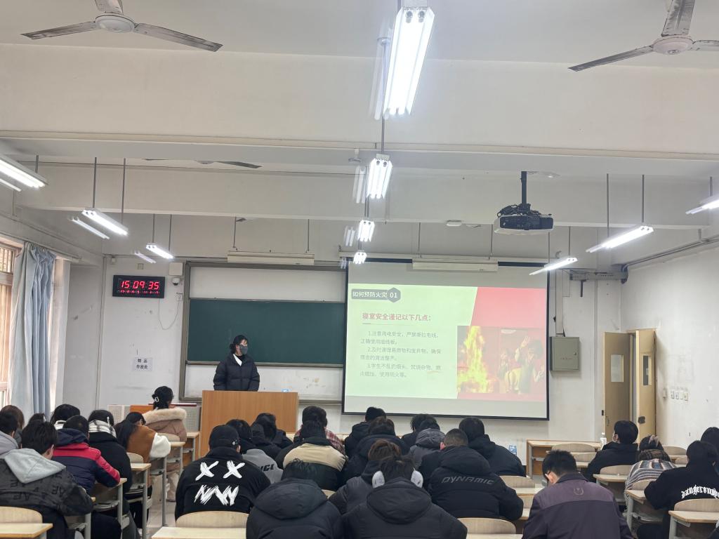 12月15日下午,在教学楼D107教室组织36365线路检测登录入口全体干部开展了以“宿舍安全隐患排查”为主题的班会,班会上,由学生干部吴双为到场学生在宿舍用电安全,防火安全等进行了详细讲解,并提醒大家在宿舍内不私拉电线、不使用大功率电器、注意饮水机用电安全、杜绝不规范用电等行为。最后,宿舍安全专员史甜甜对于走访宿舍检查情况进行通报,并结合身边的具体案例进一步加强学生干部们对于宿舍用电安全的认识,再次强调所有同学务必注意冬季宿舍防火防电安全。