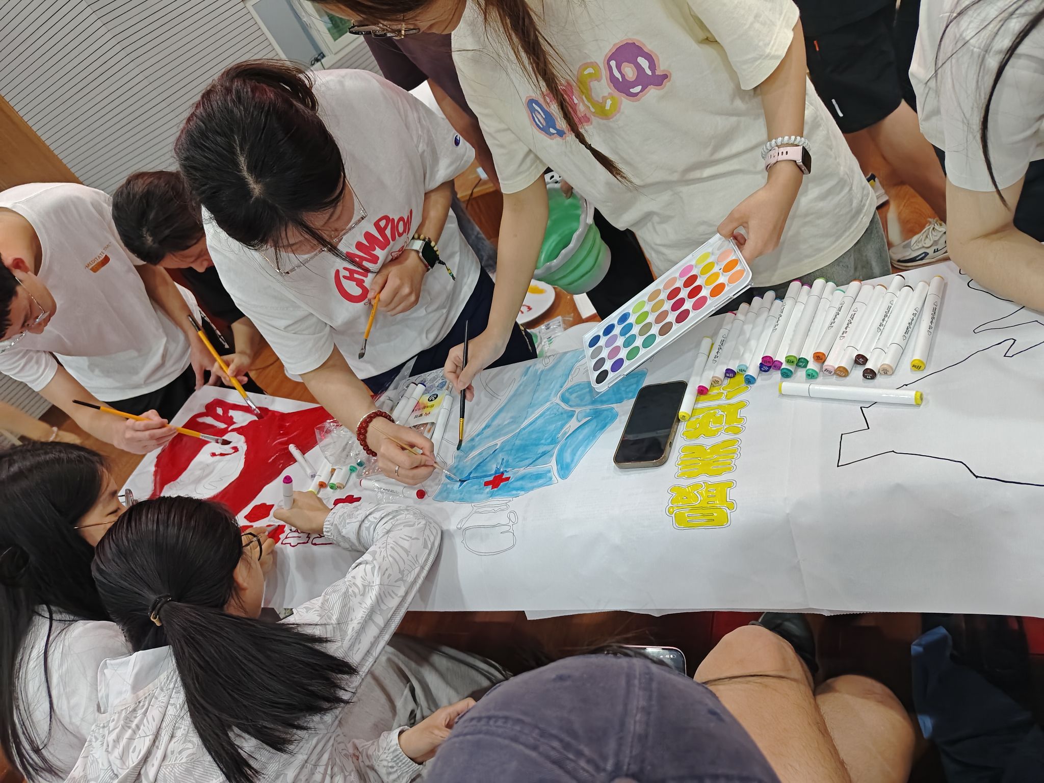 随后,一幅以“百年党史”为主题的5米红色绘画长卷创作热烈进行。党员们携手工作室成员,以党史脉络为“骨”,以艺术色彩为“翼”,从红船启航的曙光初绽,到延安窑洞的星火燎原,再到新中国成立的红旗漫卷,将重大历史场景与英雄人物逐一刻画。颜料在画布晕染,党史在笔尖流淌,参与人员在创作中回溯党的奋斗征程,让红色记忆具象化、生动化。