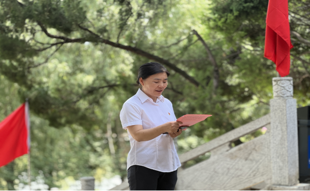 在渭华起义纪念馆前,教学科科长、学院思政课教师裴昉为各位党员详细讲解了渭华起义爆发的历史背景、主要经过等内容,帮助大家感悟革命烈士悲壮英勇的动人事迹,切身感受先辈们的革命精神。学生科科长叶蕊带领全体党员面向党旗,重温入党誓词,在铮铮誓言中铭记初心,汲取奋进力量。宣誓结束后,党总支书记杨瑞侠以《让心存敬畏、手握戒尺真正成为日常自觉》为题,结合一些典型案例为全体党员上了一堂鲜活生动的党课。她提醒广大党员要在工作和生活中时刻以党员标准严格要求自己,切实发挥党支部的战斗堡垒和党员先锋模范作用,增强党组织的创造力、凝聚力、战斗力,为推进学校高质量发展做贡献。