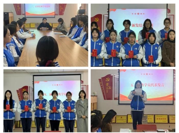 左馨宣读了本期培训班结业学院名单及优秀学员名单,向所有顺利完成学业、表现出色的学员致以热烈祝贺。王雪乐向完成培训任务的学员颁发结业证书,叶蕊向优秀学员颁发优秀学员证书。随后,卢萍同学赵蕊同学分享了自己在培训期间的宝贵收获。她们谈到这次培训不仅是一次知识的洗礼,更是一次精神的提升,表示未来会继续努力,以实际行动争取早日成为一名合格的共产党员。