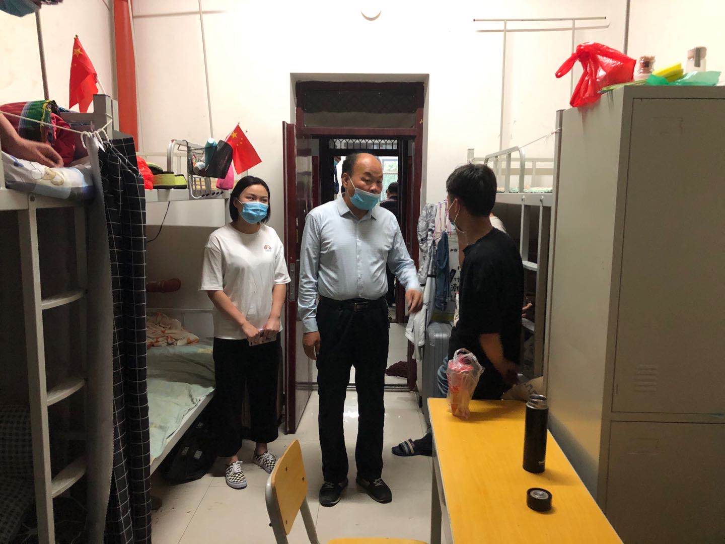 5月17日晚,beat365官方网站党总支书记卢百龙、院长郭楚伟、副院长李有成、副书记黄翠萍、学生科科长陈旭铖、办公室主任李新萍前往学生宿舍楼看望返校学生并检查宿舍防疫工作。