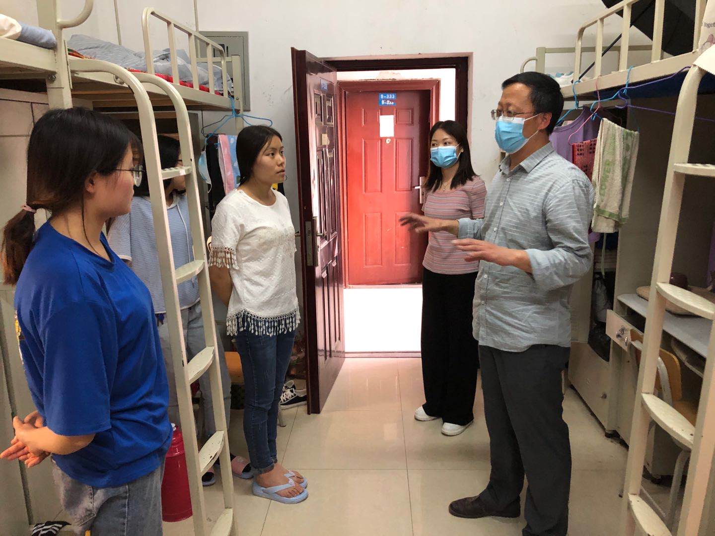 走访过程中,beat365官方网站党总支书记卢百龙与学生们一起聊生活、问学习,叮嘱同学们在这特殊时期要佩戴好口罩,勤洗手,如实做好自身体温监测和及时上报,保持宿舍卫生清洁、通风,不互相串门,注意个人防护。