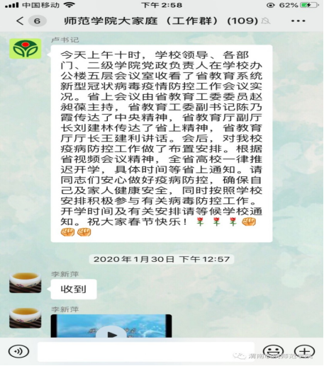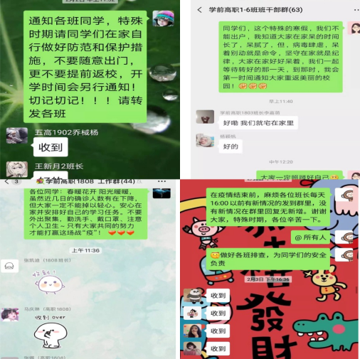 为做好疫情防控工作,全体辅导员在学院领导的领导下,迅速从“假期模式”转入“战时状态”,做到守土有责、守土负责、守土尽责。不论身在何地、人在何方,都奋战在防控工作前线,积极把权威的防控知识、贴心的关怀、乐观的勇气带给每一位师范学子。