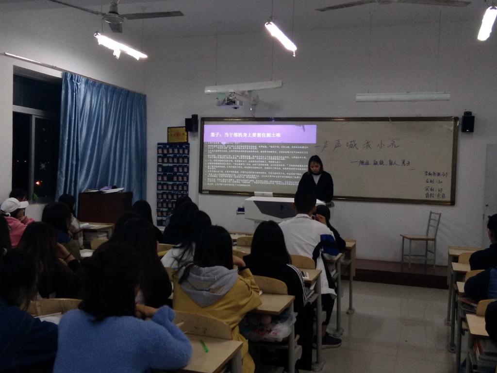 团课上,各班团支书通过课件展示及专题新闻报道,使同学们更加深入地了解和学习习近平总书记在梁家河党支部工作时的情形以及工作时一丝不苟,仔细认真、不怕麻烦、雷厉风行的作风。同学们表示:习近平总书记提出来的“空谈误国,实干兴邦”的道理,对大家的学习和生活的各个方面都影响深远,使大家更加明确任何事情都要亲力亲为的重要性。