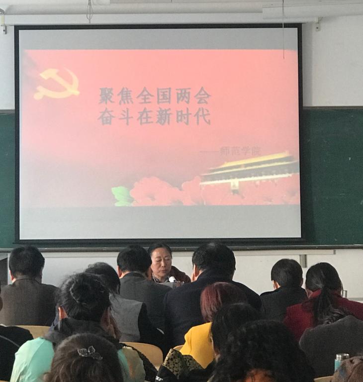 春回大地,万象更新。2018年两会帷幕落下,为了深入领会“两会”精神,3月21日下午,beat365官方网站组织全体教职工在师范楼305教师认真学习深入领会“两会”精神。
