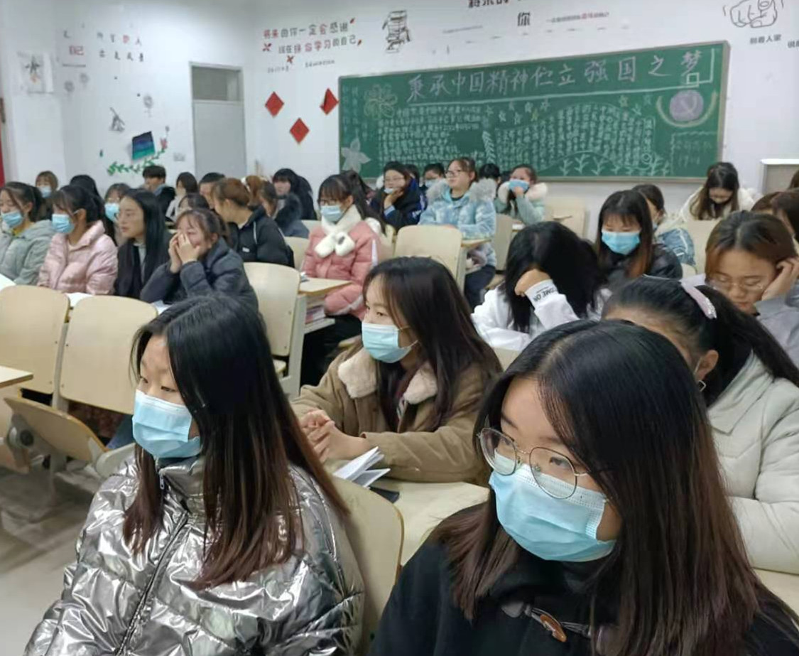 在团课上,各班团支书以图片、视频等形式向同学们展示了中国抗疫斗争中的英雄模范事迹,学习抗疫斗争伟大实践中彰显的中国精神、中国力量、中国担当。伟大的抗疫精神,集中体现了中国人民万众一心、同甘共苦不被任何困难所压倒的顽强意志。人无精神不立,国无精神不强,同学们深刻地明白,在新时代征程中赢得优势、赢得主动,就必须弘扬中国精神,凝聚中国力量,使之转化为全面建设社会主义现代化国家、实现中华民族伟大复兴的强大力量!