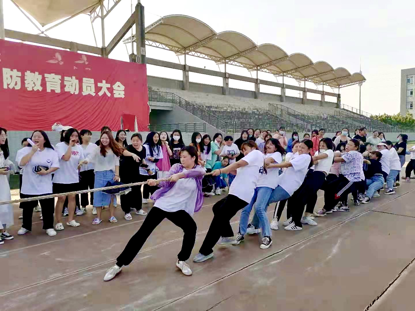 为了丰富大学生的校园文化生活,提高大学生的身心素质,增强班集体凝聚力,营造积极向上、健康文明的校园文化氛围,5月12日beat365官方网站举行了校园拔河比赛,全体学生以极大的热情投入到本次活动中。