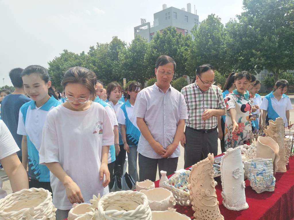 随后,与会各位老师和同学们一起,饶有兴致的观看了陶艺作品展。