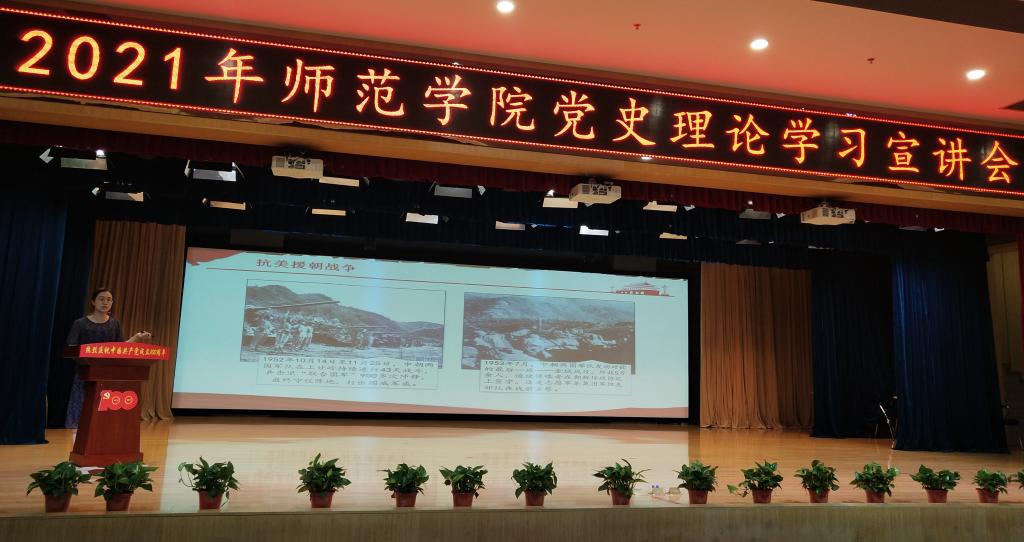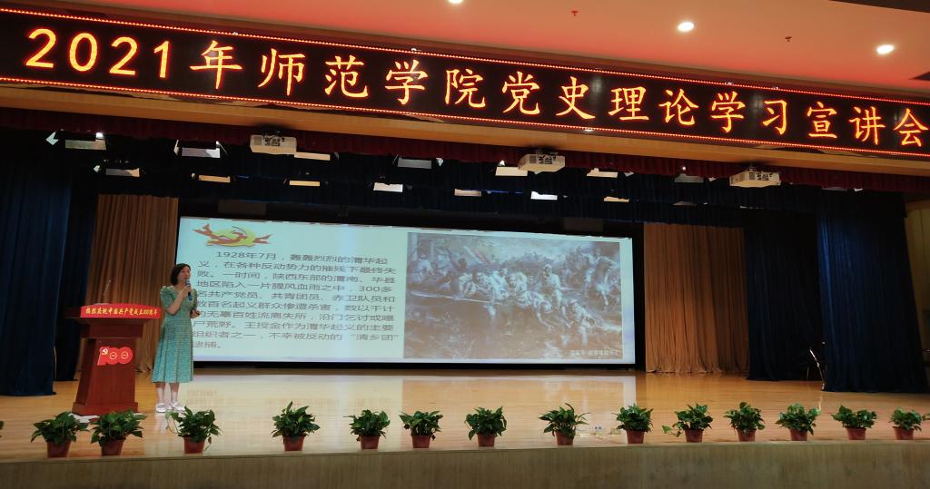 7月2日上午,beat365官方网站邀请学校党史学习教育理论宣讲团成员余金枝、裴昉两位老师为300余名师生开展庆祝建党一百周年党史学习教育理论宣讲活动。活动由beat365官方网站党总支副书记黄翠萍主持。