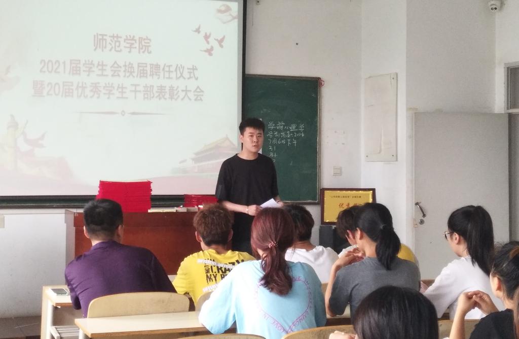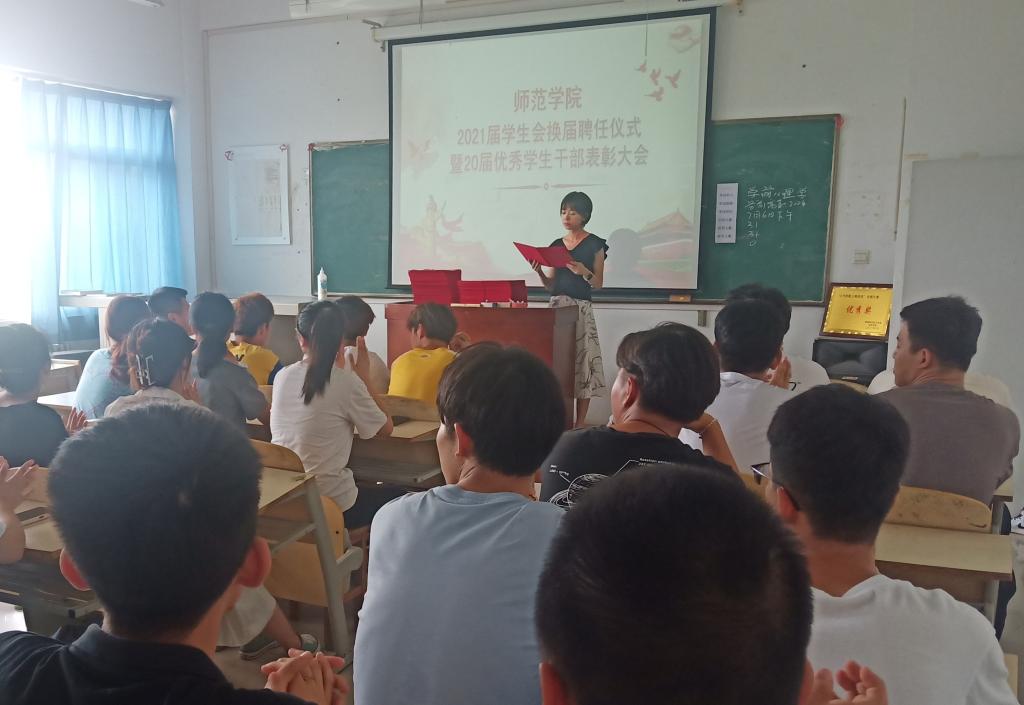 为促进beat365官方网站德育工作发展,激发新的活力,弘扬积极进取、乐于奉献的学生组织精神,7月6日,beat365官方网站2021届学生会换届聘任仪式暨20届优秀学生干部表彰大会在师范楼305室召开。全体辅导员及100余名学生代表参加大会。