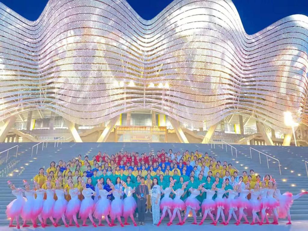 此次前往奥体中心集训参演的学生演员,是在千余人中经过严格的选拔脱颖而出的。参训师生放弃暑假休息,冒着高温酷暑,不分昼夜,刻苦训练。他们不仅要认真排练,还要配合组委会做好各项防疫工作。参演师生投入近两个月高强度的紧张集训,就是为了能向全运会交出一份满意的答卷。为了追求更加完美的节目效果,她们不辞辛苦,在排练场上,不怕苦,不怕累,一遍又一遍地训练着,她们用精湛的舞蹈技艺和坚韧的毅力,默默的向全运会奉献着。