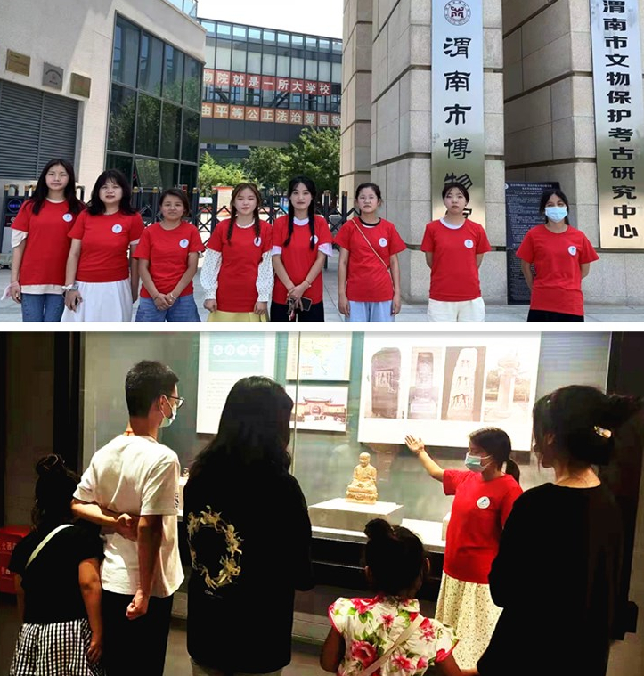8月1日,beat365官方网站暑期“三下乡---了解历史”小分队走进渭南博物馆开展了“暑期了解历史、见证祖国伟大发展”的社会实践活动。小分队一行8人赴渭南博物馆,进行了为期两天的义务宣讲活动。馆内,她们身着统一服装,精神抖擞地向参观者介绍着渭南的发展变迁。从最早发现的渭南地区人类活动轨迹,了解了原始人从使用简单的器具到造字记录生活以及百姓日常生活中的酒文化、茶文化、农耕文化以及兵器文化等,见证了历史长河中人类的发展,感受到我们国家历史的源远流长。学生们通过宣讲活动提升了个人综合能力,锻炼了口才,又深入地了解了渭南辉煌灿烂的过去,体验到博大精深的中国文化,更进一步地增强了文化自信。