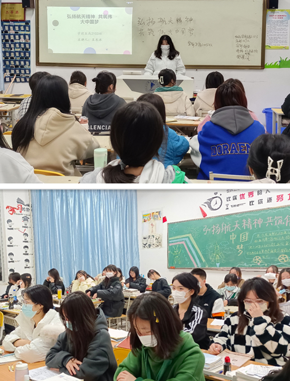 在此次团课上,各班团支书从航天精神的“奉献精神、爱国信念、勇于登攀的意识、科学求实的作风和淡泊名利的品质”的五个基本内涵为同学们做了详细的讲解。通过播放相关视频,使同学们了解到航天人员“特别能奉献”,他们淡泊名利,默默奉献,付出青春与热血,有献出生命也在所不惜的一种质朴的为民情怀。团支书呼吁同学们努力学习与弘扬航天精神,面对困难坚韧不拔,百折不挠,努力提升自己,勇于担当,为实现中华民族伟大复兴的中国梦奉献自己的一份力量。