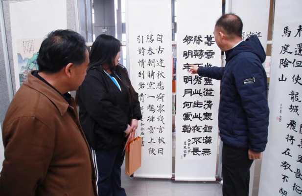 此次书画展展出陈俊哲、王鸣放、乔春征、罗小平、薛小虎、党宽阳、陈龙、史建军等名家书法作品18幅、国画作品14幅,以及我院学生作品50幅,形式多样,风格各异,展现了艺术创作的才华和智慧,表现了对美好生活的向往和追求。书画展体现了我院“创文”和文明校园建设成果,进一步营造出和谐美好的校园文化氛围,广大师生在展览中既感受到书画艺术的魅力,又激发出共同为创建文明城市和文明校园贡献力量的热情和决心。