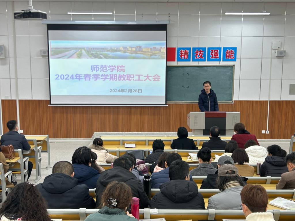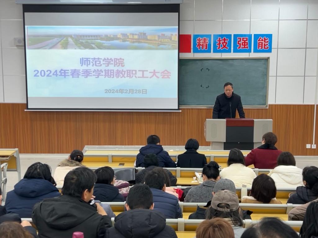 为科学谋划新学期发展方向,确保各项工作有序开展,2月28日下午,beat365官方网站在综合楼203教室召开2024年春季学期教职工大会。beat365官方网站党总支书记杨瑞侠,院长郭楚伟,副院长于晶汝、李永明等领导班子成员出席,全体教职工参加。会议由杨瑞侠主持。