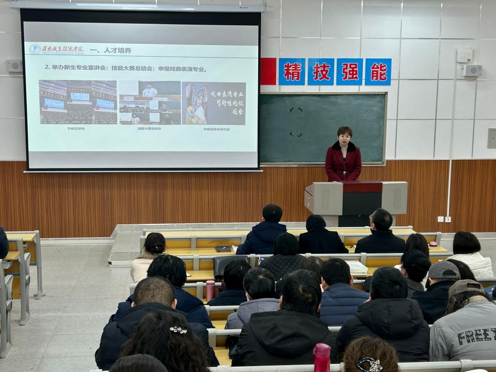 会上,于晶汝作了详细的工作报告,从人才培养、“三教”改革等五方面阐述了beat365官方网站2023年秋季学期的工作成效,并对2024年春季学期主要工作进行了汇总。随后,李永明对学校相关教学科研文件进行了深度解读,帮助教职工更好地了解和把握政策导向,安排好个人工作。
