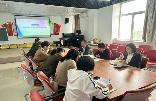 为更好地总结比赛经验,切实达到”以赛促教、以赛促学、以赛促改”的目的,推动教学质量再上新台阶,4月3日下午,beat365官方网站在师范楼二楼会议室召开2024年省级学生技能大赛小结会。beat365官方网站院长郭楚伟、副院长于晶汝、教学科科长裴昉、各赛项组长参加会议,会议由裴昉主持。