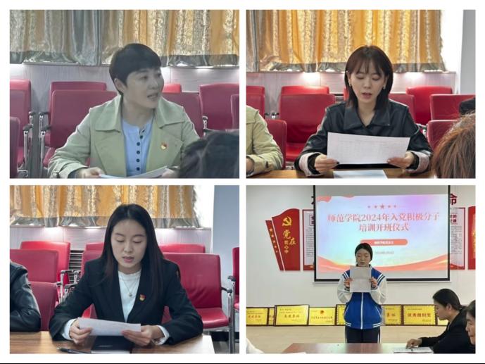 黄翠萍作开班动员讲话。她对参训学员表示热烈欢迎同时提出三方面的期望和要求:一是端正态度,明确目标;二是认真学习,深入思考;三是加强党性修养,锤炼意志品质,以实际行动践行党的宗旨和誓言。随后,叶蕊宣读本次培训班成员名单以及培训日程安排,王雪乐宣读入党积极分子培训班纪律要求。新学员代表徐明扬同学进行讲话。