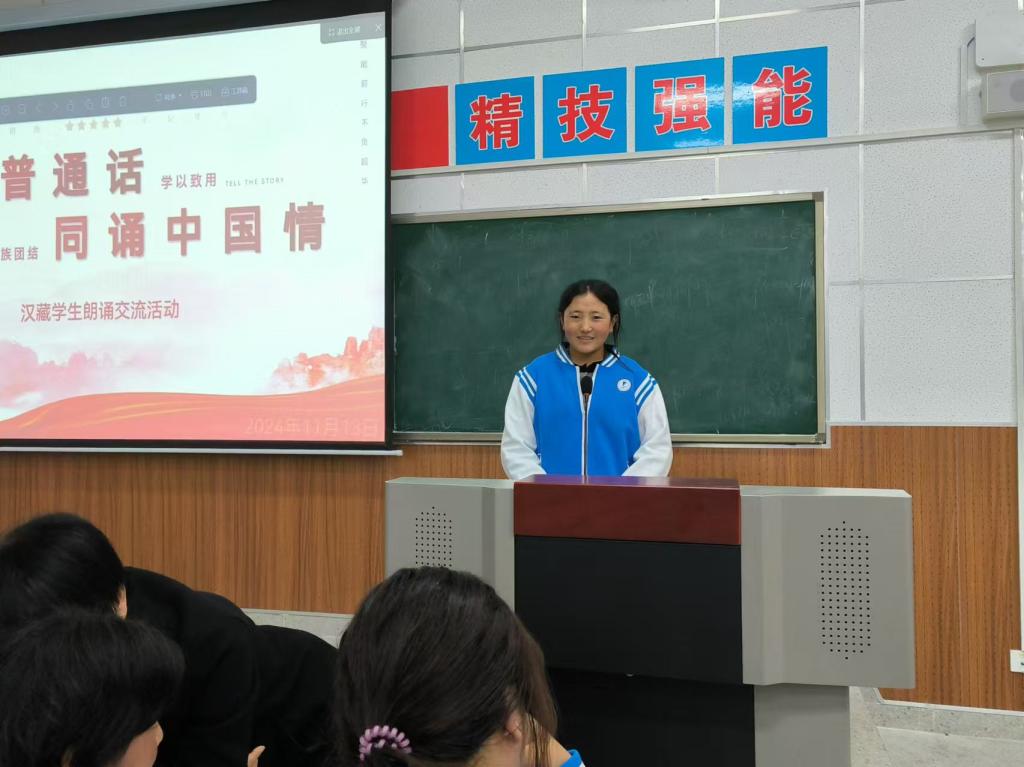 活动过程中,阿里班普通话任课教师雷立英首先生动地讲解了普通话的重要性,她强调普通话作为我们国家的通用语言,不仅是中华民族文化传承和发展的重要载体,更是我们日常生活中沟通交流的桥梁。随后,汉藏同学纷纷用清脆悦耳的普通话,深情诵读起一篇篇经典散文。他们的声音里,既有对文字之美的细腻品味,更有对祖国大好河山的无限热爱与自豪。每一个音节,都像是从心底流淌出的溪流,表达着对中华文化的尊崇与传承,以及对国家民族的深切认同。