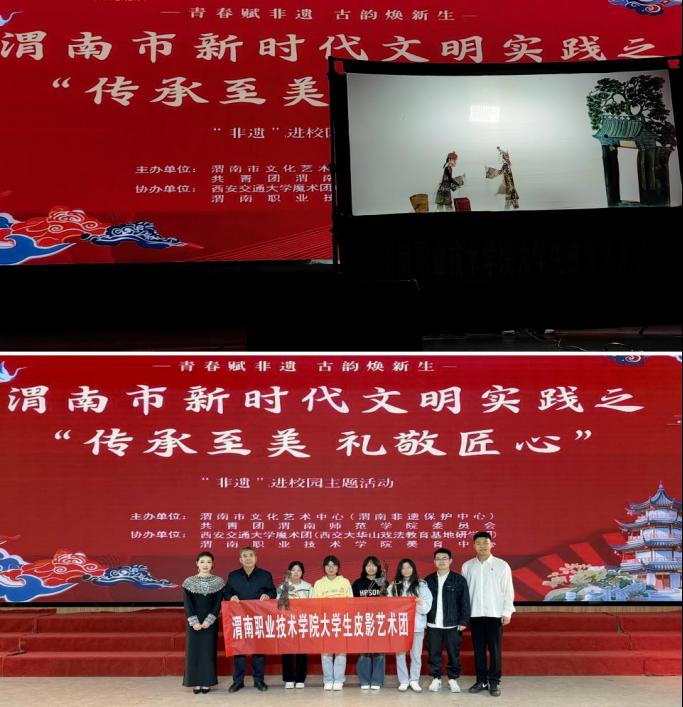 活动由渭南市文化艺术中心(非遗保护中心)和渭南beat365官方网站主办,西安交大魔术团和beat365美育中心协办,来自渭南市各县区和有关高校的艺术团体分别表演了秦腔、民歌、魔术、皮影等非遗类节目,为在场师生带来了一场精彩的非遗艺术展演。