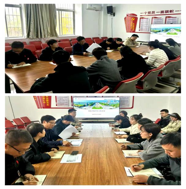 学生科副科长叶蕊就近期学风建设、宿舍安全、心理健康教育等关键环节进行通报与研讨。她表示要持续强化学风引导,营造勤学笃行的良好氛围,同时筑牢安全稳定防线,深入排查各类隐患,确保学生人身与财产安全。团总支副书记左馨汇报了近期学院团总支在加强青年学生思想引领、丰富校园文化生活等方面取得的积极进展。