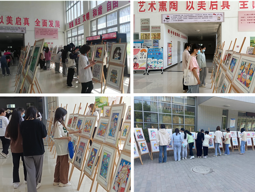 beat365官方网站任聪老师作为指导教师对学生作品进行点评汇报,她说:“每一幅画作,从字体、构图、色彩表现到最后的成品的呈现,是班集体之间的互相探讨,教师和同学们一次次的修改的结果,这不仅是学生个人能力的展示,更是班级团结一致的凝聚力的体现。展览为同学们提供一个展示自己的平台,带动大家的积极性,促进同学们对绘画的热情与坚持,以美启真,全面发展。”