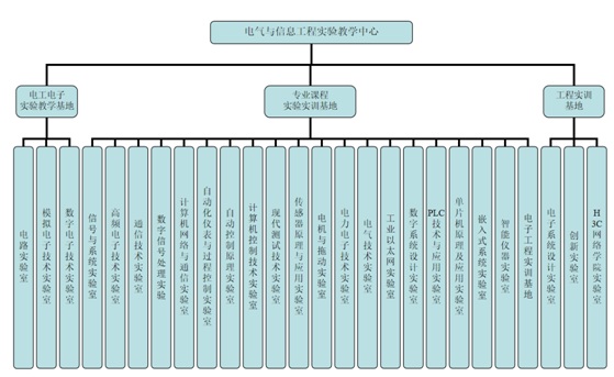 中心规划为三个基地:电工电子教学实验基地、电气与信息工程类专业教学实验基地和电气与信息工程实训基地。面向本系“电气工程及其自动化”、“电子信息工程”、“自动化”、“测控技术与仪器”4个电类本科专业以及全院有相关课程的各非电类本科专业开展教学和建设工作,主要承担多门电类基础专业课程的实践教学任务和课程设计,并承担开展大学生课外科技活动及大学生设计竞赛、挑战杯等学生创新实践活动。是学校辐射专业最广、面向学生最多的教学实验中心。